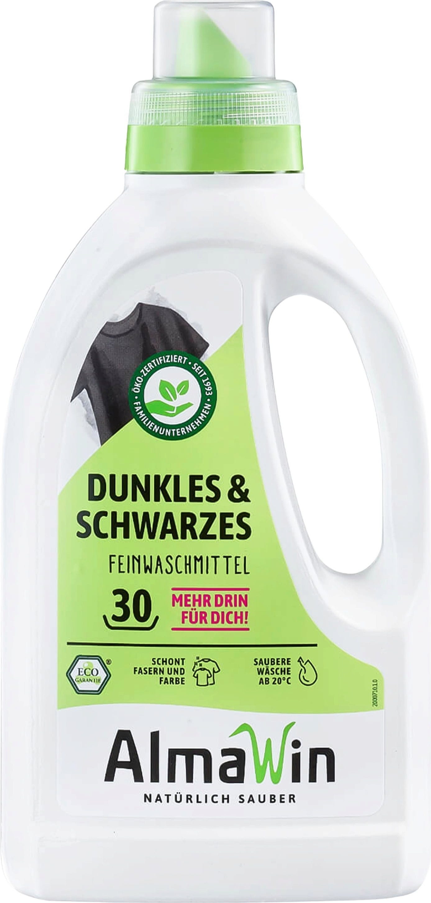 Questo detersivo AlmaWin è un eco-concentrato, particolarmente adatto alla pelle sensibile ed estremamente biodegradabile. È adatto a tutte le fibre naturali nere e scure, miste e sintetiche per il lavaggio a mano e in lavatrice.