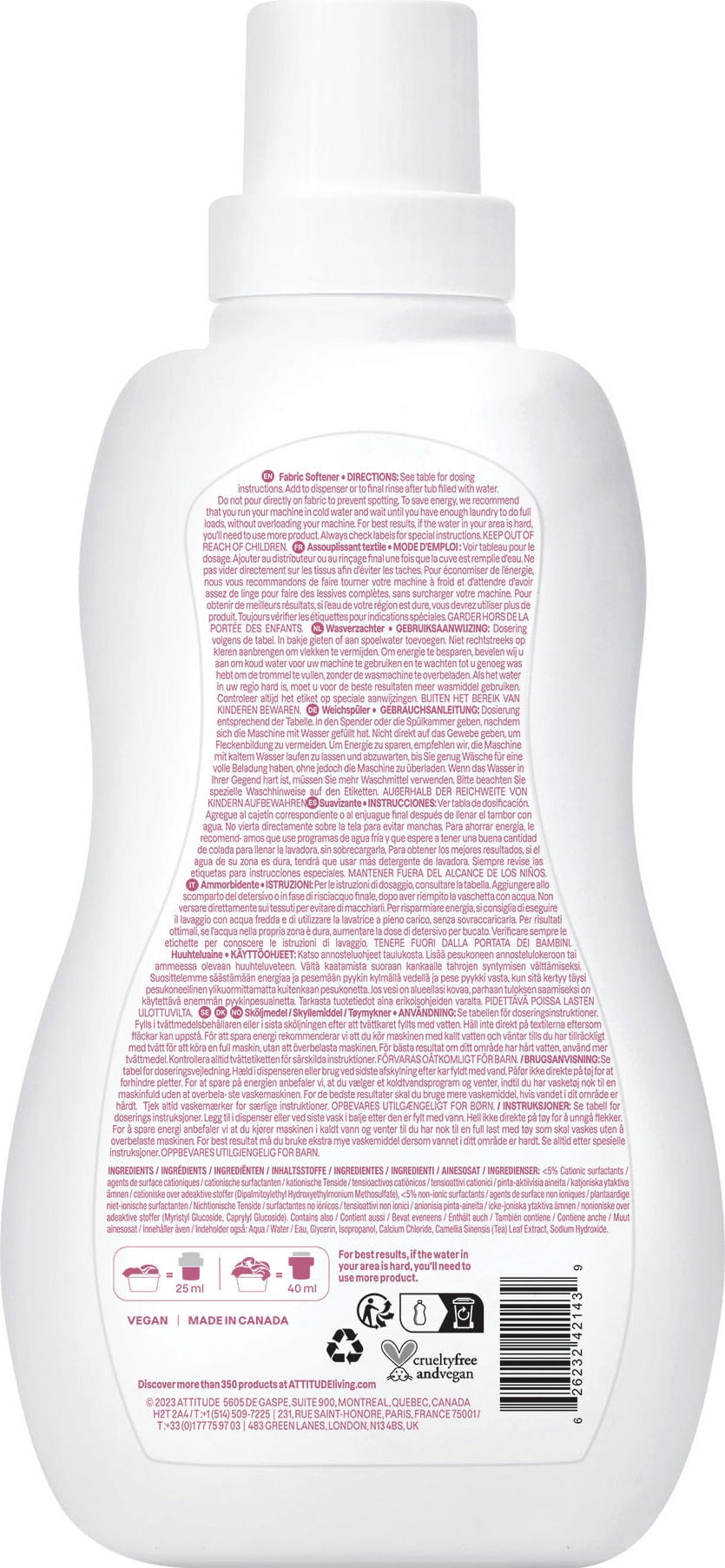 Questo speciale ammorbidente naturale di ATTITUDE è privo di profumazione e coloranti. Per un bucato morbidissimo!