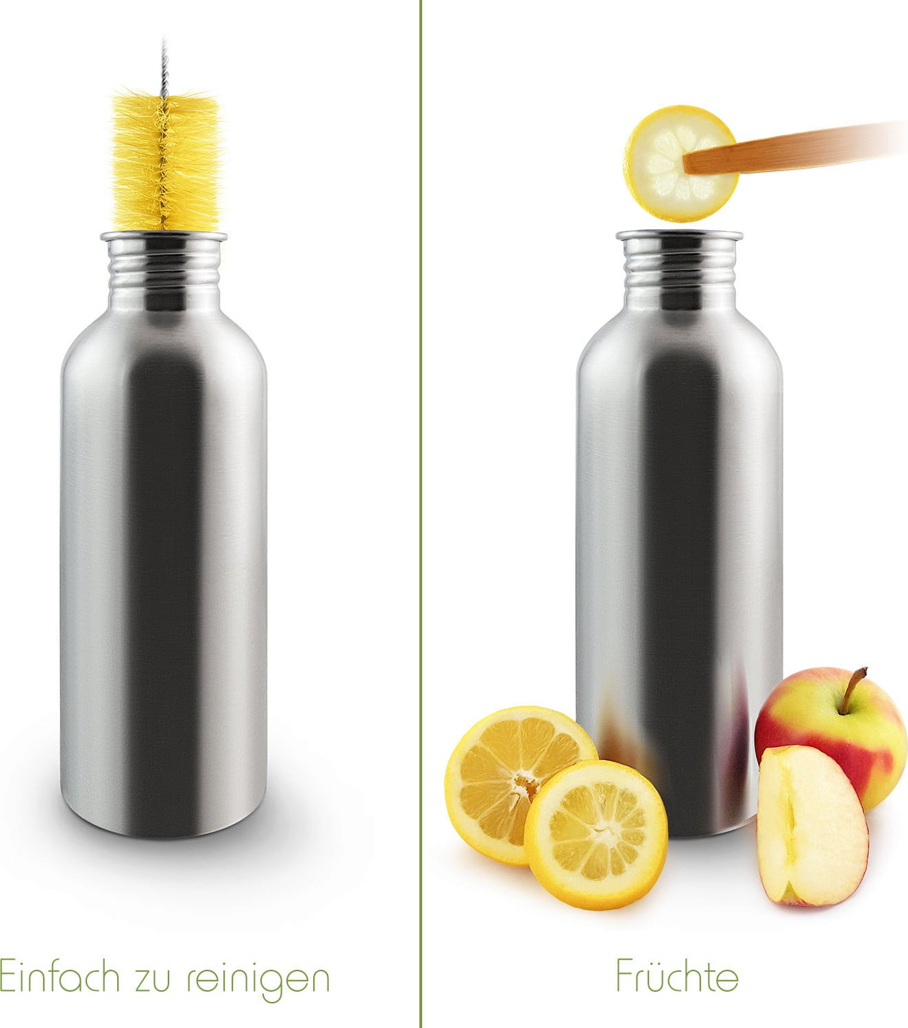 Questa borraccia è perfetta per la tua vita quotidiana! Infatti, è ideale sia per lo sport, in ufficio, a scuola o per le escursioni. È realizzata in acciaio inossidabile, ha un tappo a vite in bambù a prova di perdite e presenta un design semplice e classico. La bottiglia è priva di sostanze chimiche nocive e può essere facilmente pulita con una spazzola specifica dopo l'uso.