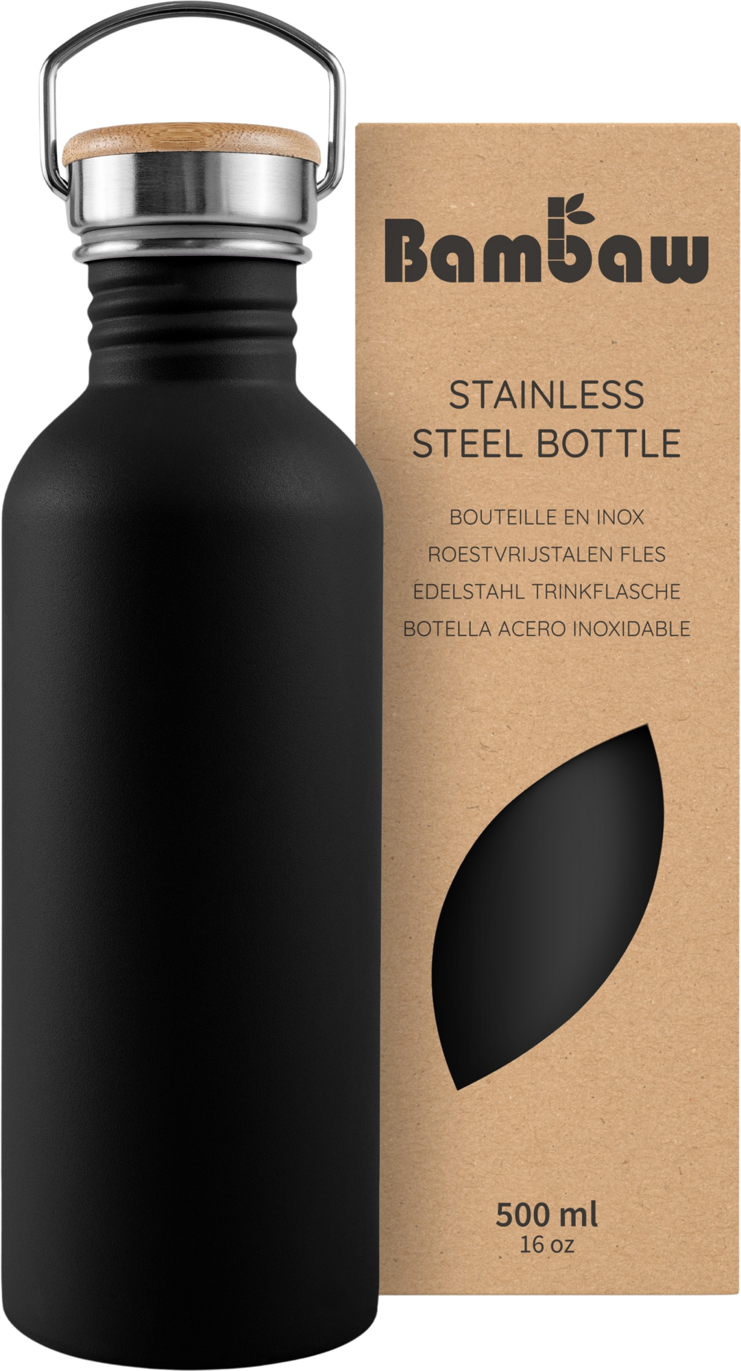 Bambaw Borraccia in Acciaio Inossidabile, 500 ml, Jet Black