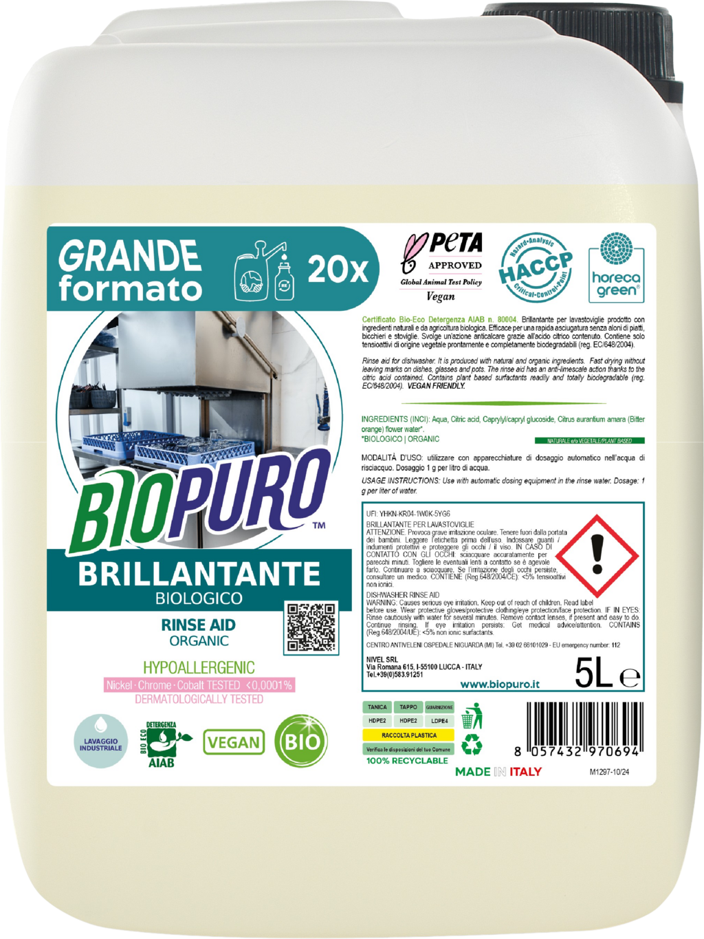 - Contiene < 5% di tensioattivi non ionici vegetali