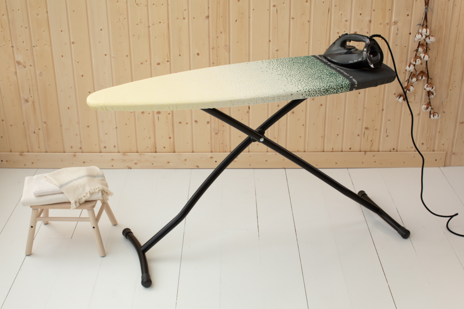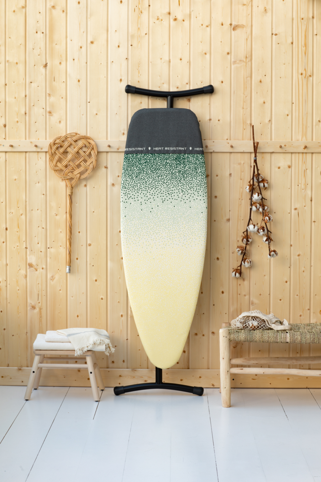 Asse da stiro extra largo ed extra lungo per un maggiore comfort durante la stiratura. La forma dell'asse facilita la stiratura di camicette, camicie e pantaloni. La zona integrata resistente al calore sostituisce la solita staffa per appoggiare il ferro.