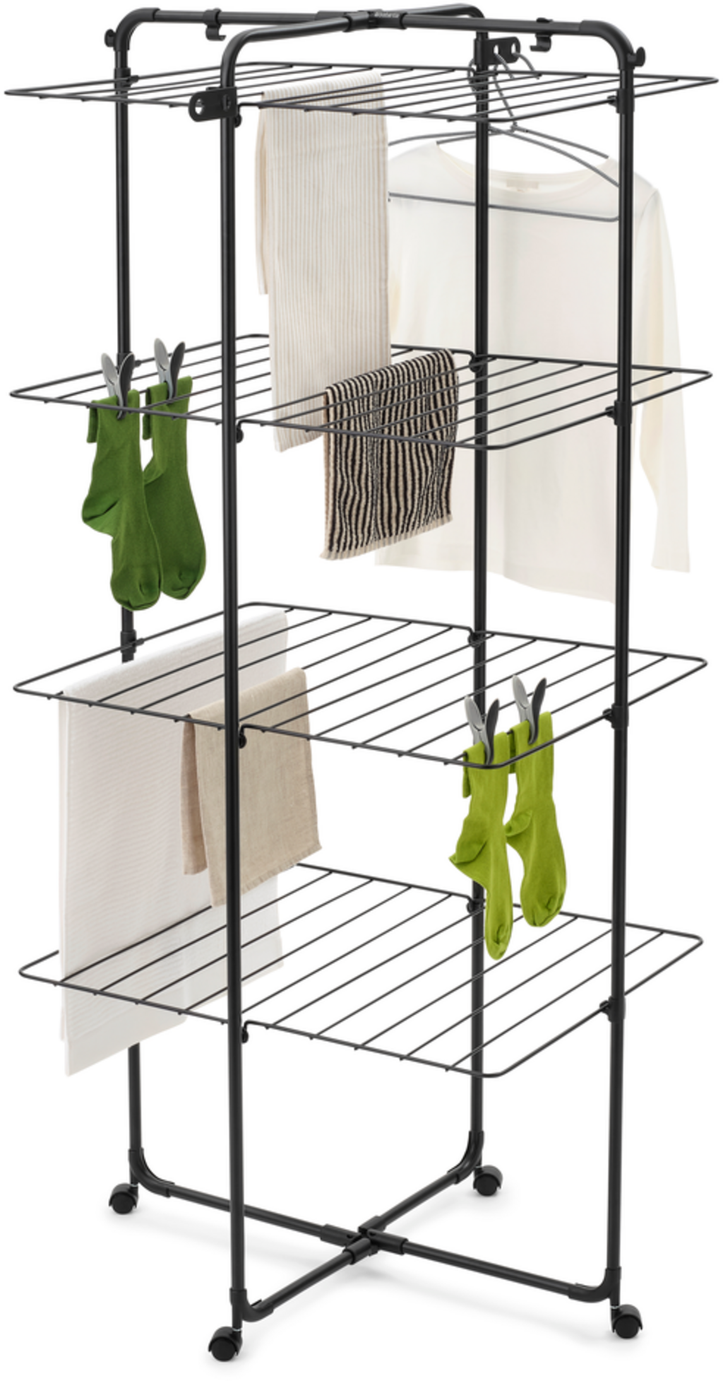 brabantia HangOn - Stendibiancheria a Torre, 30 m, Matt Black