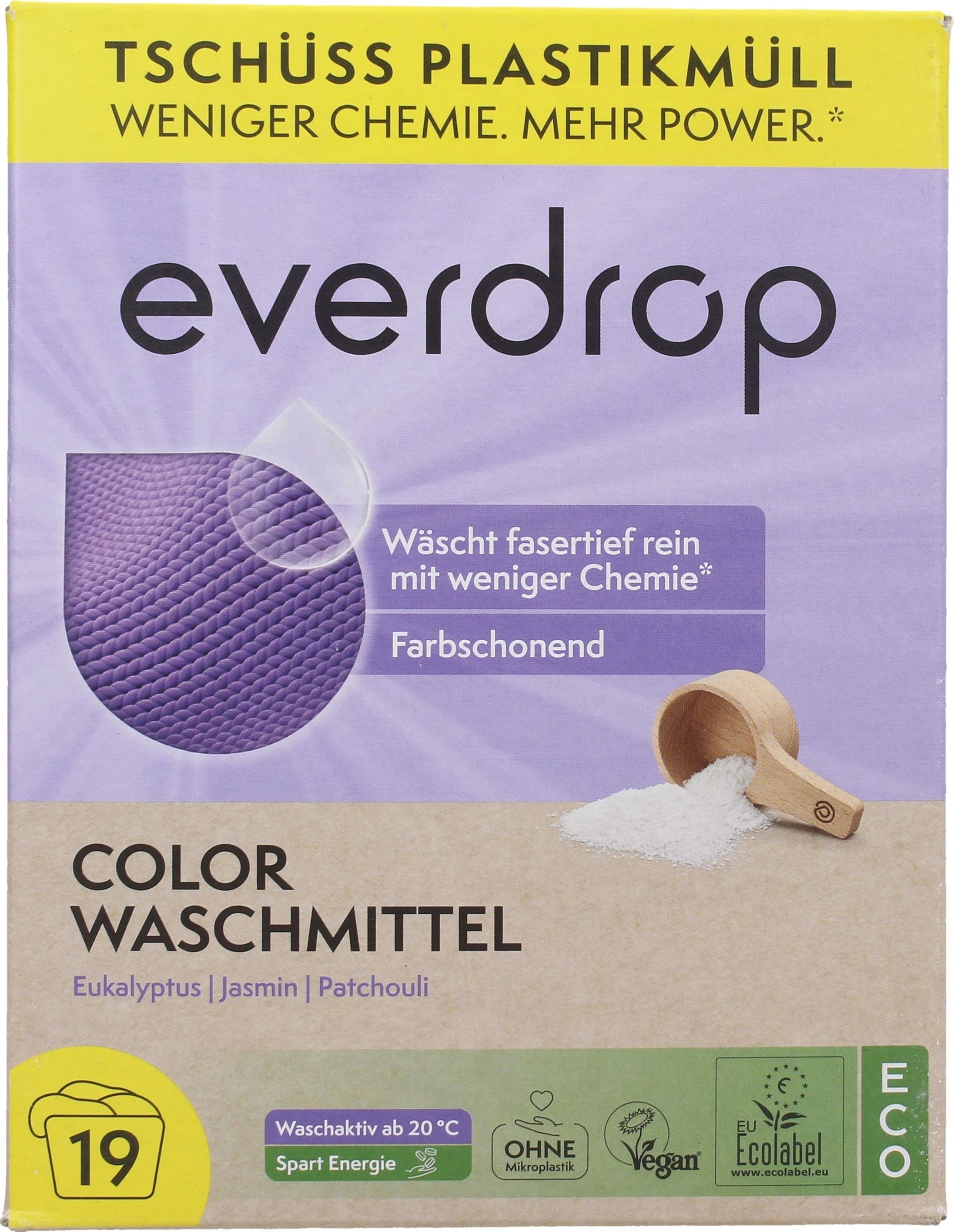 Conservato in una confezione di carta completamente priva di plastica, questo detersivo presenta una composizione biodegradabile, senza microplastiche e senza ingredienti animali. Con l'ausilio di tensioattivi vegetali, il detersivo si prende cura dei tuoi capi colorati e scuri, mentre le fragranze naturali donano un delicato profumo di eucalipto, gelsomino e patchouli. Poiché sviluppa la sua piena potenza di lavaggio a partire da una temperatura di lavaggio di 20 °C e richiede fino al 40% di dosaggio in meno rispetto ad altri detersivi ecologici, questo detersivo ti permette di lavare il bucato in modo più sostenibile!