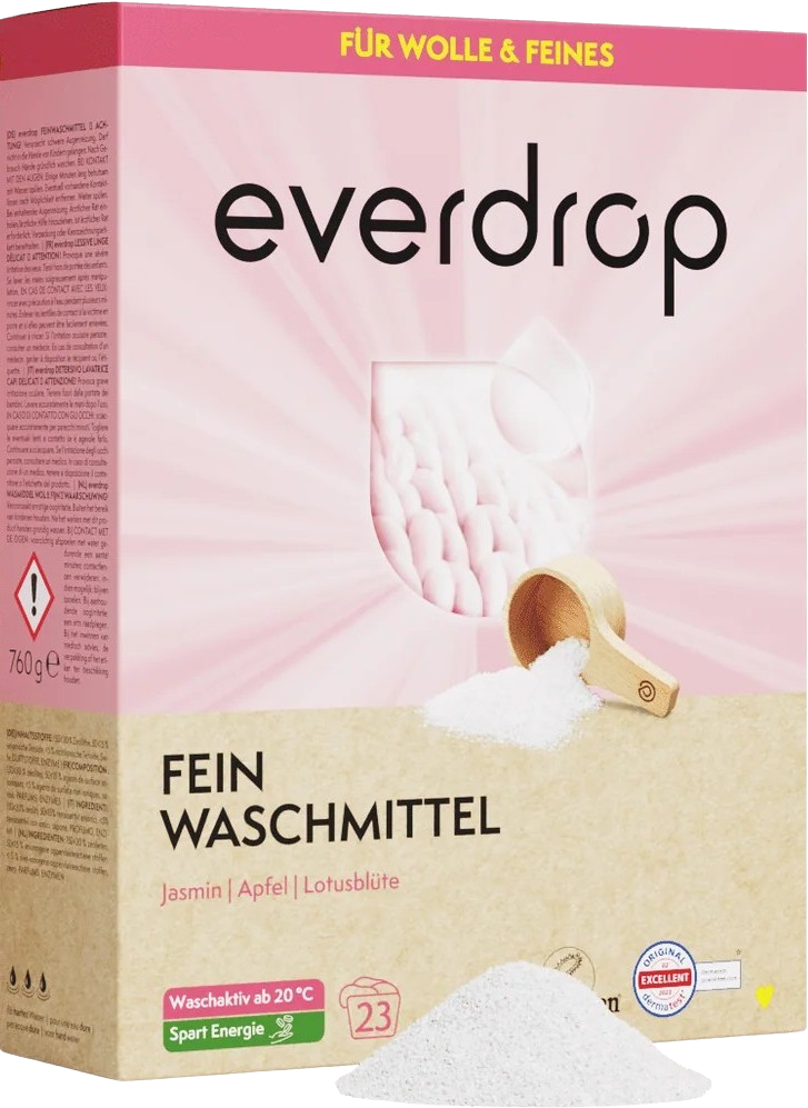 Questo detersivo per capi delicati in polvere deve la sua efficacia alla formula con tensioattivi di origine vegetale, che assicura una pulizia dolce ma profonda. È ideale per tessuti sensibili come pizzi, lana, viscosa e seta. Oltre a detergere con cura, aiuta a ravvivare i colori e a mantenere le fibre morbide e piacevoli al tatto. Già a partire da 20 °C il detersivo è attivo, contribuendo a ridurre il consumo energetico e a rispettare l’ambiente. Lascia il bucato delicatamente profumato, con una leggera nota floreale.