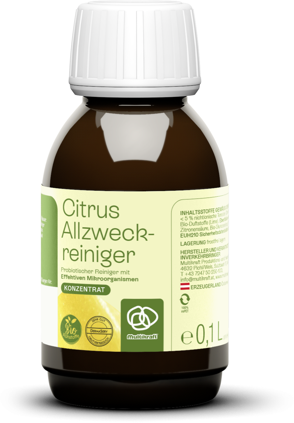 Il detergente multiuso EM di Multikraft contiene microrganismi probiotici che decompongono i contaminanti. Questi microrganismi colonizzano anche le superfici e diventano reattivi in caso di nuovo sporco. Il detergente è adatto a tutte le superfici, neutralizza gli odori sgradevoli e, con un uso regolare, garantisce una pulizia a lungo termine. Inoltre, essendo concentrato, ne basta poco e offre la possibilità di pulire le superfici in modo naturale da sporco e depositi.