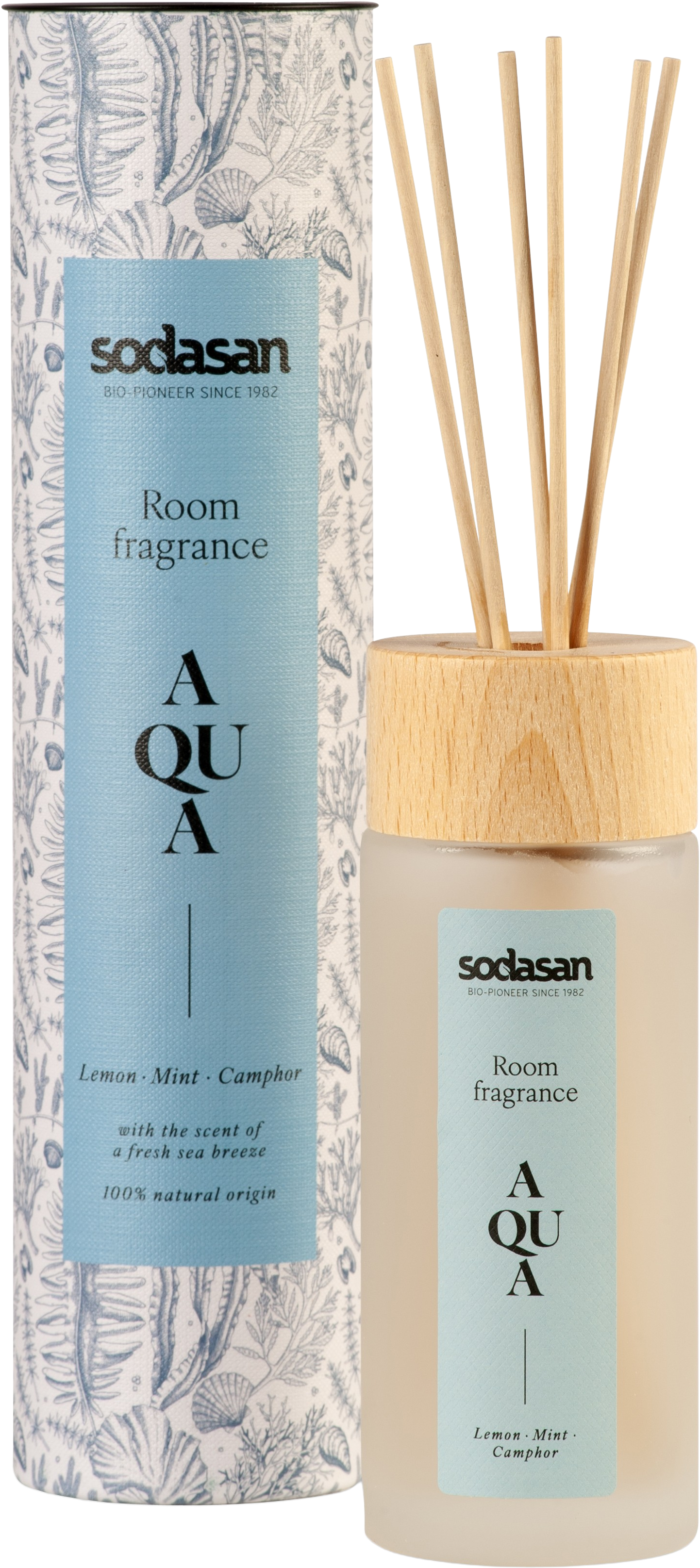 Il diffusore per ambienti AQUA di sodasan sprigiona una fragranza rivitalizzante e crea un'atmosfera piacevole nei tuoi spazi abitativi. La combinazione di menta e canfora, arricchita da accordi acquatici, dà vita a un aroma meravigliosamente fresco che illumina subito la casa con una sensazione di leggerezza.