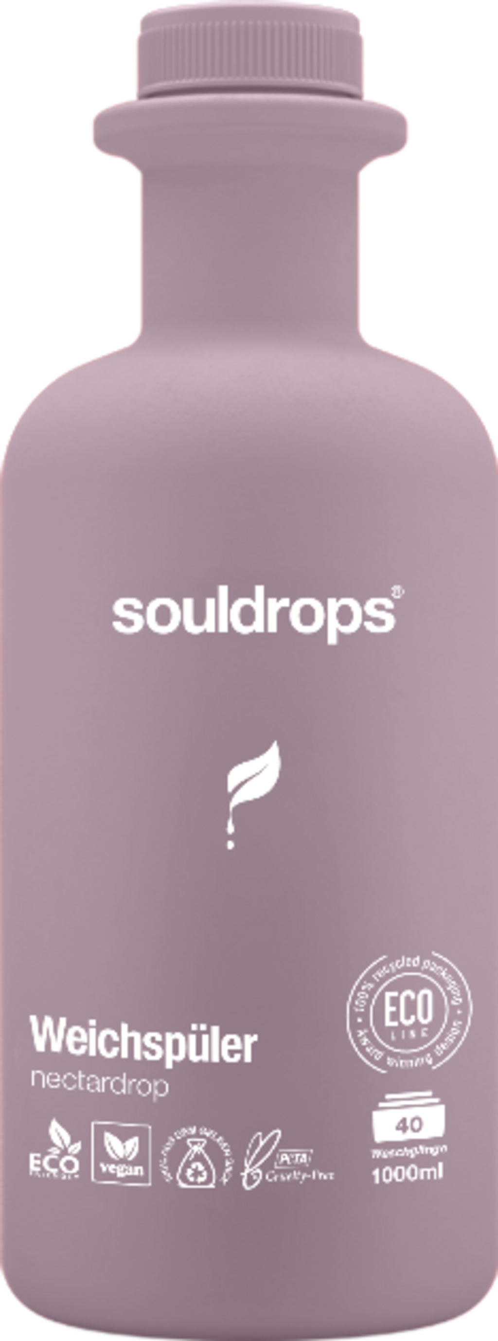 L'ammorbidente souldrops rende i tuoi tessuti morbidi e antistatici. Il tensioattivo cationico contenuto nella formulazione rimuove efficacemente i residui di detersivo ed è privo di ingredienti nocivi. L'ammorbidente ha una consistenza lattiginosa ed è adatto sia per il lavaggio in lavatrice che a mano.